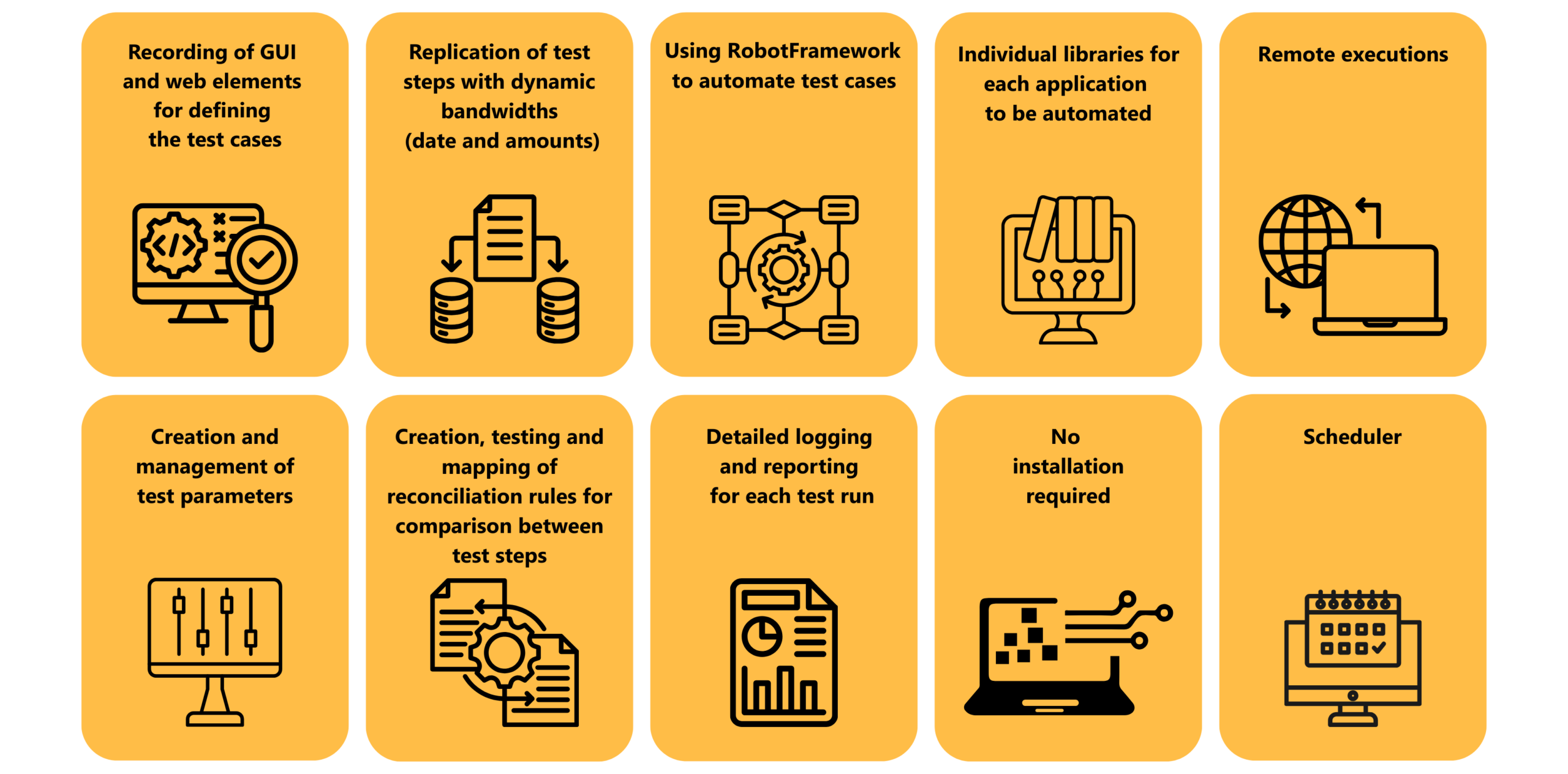 Once created, test cases can be reused, copied, parameterised or imported as often as required.